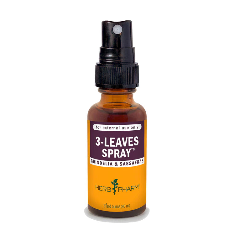 3-Leaves Spray is a proprietary blend of the extracts of Grindelia leaf & flower (Grindelia integrifolia), Sassafras root bark (Sassafras albidum), and Menthol crystals (Mentha canadensis). This topical formula comes in an easy-to-use spray format for minimal mess. Just spray it freely on your skin and let it dry.